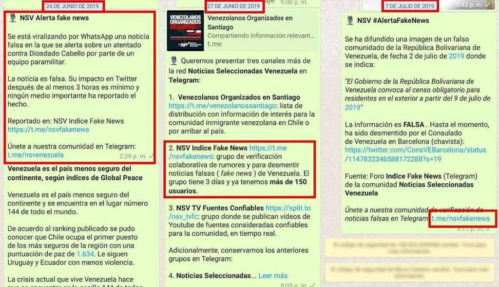 El desmentido fue distribuido por los canales de WhatsApp, su canal «espejo» en Telegram y por el recién creado grupo de Telegram «NSV Índice Fake News«, que fue la génesis de Cazadores de Fake News: