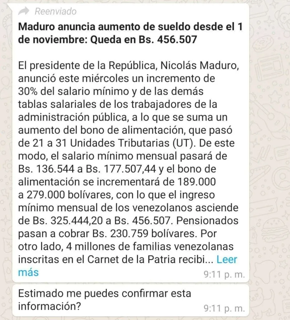 De forma espontánea, la comunidad comenzó a emitir desmentidos en texto de muchos de las consultas realizadas por sus integrantes. El 24 de junio de 2019 se publicó en por WhatsApp el primer desmentido: una cadena de WhatsApp sobre un falso ajusticiamiento de colectivos, supuestamente decapitados por paramilitares, que había circulado junto a una foto engañosa, que se correspondía con un accidente de tránsito no relacionado ocurrido 8 días antes.