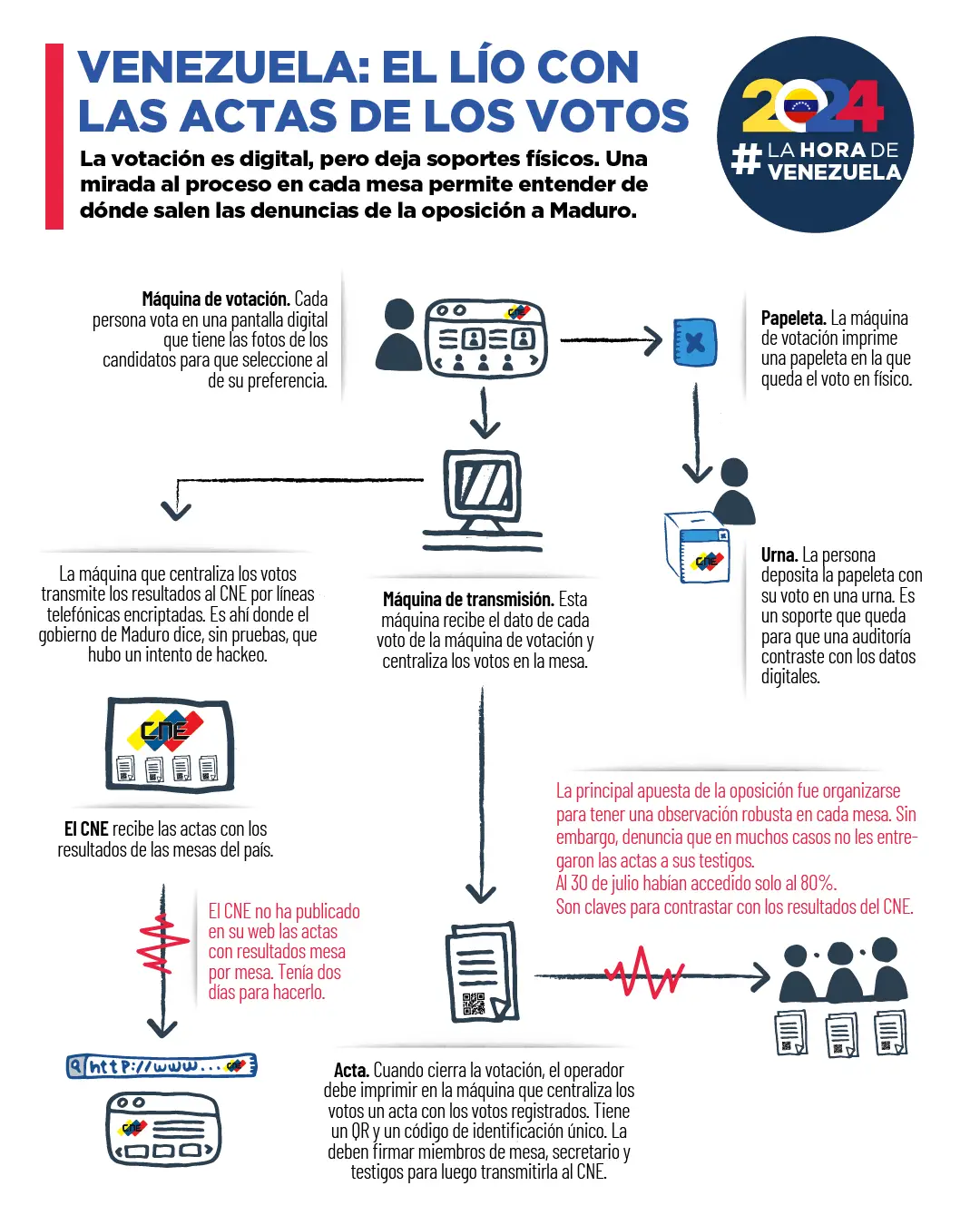 Más de 25.000 actas electorales de los comicios presidenciales del pasado 28 de julio en Venezuela, publicadas por la oposición en resultadosconvzla.com, ahora están disponibles en línea para consulta directa a través de la plataforma Pinpoint de Google Journalist Studio. La colección de documentos a la que accedió Cazadores de Fake News fue compartida en Pinpoint por la plataforma periodística CONNECTAS y es presentada por integrantes de #LaHoraDeVenezuela / Venezuela Vota, una coalición de medios y organizaciones venezolanas que difunden contenidos verificados sobre el proceso electoral y los eventos que han ocurrido en el país luego de los comicios.