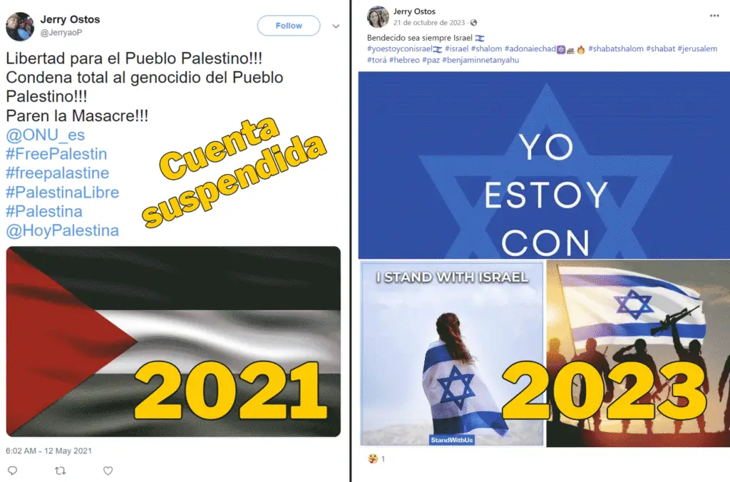 El cambio en la postura política de Ostos, también quedó en evidencia en su posición respecto al conflicto Israel-Palestina. Varios mensajes pro-Israel que publicó en Facebook apenas en 2023, fueron señalados por la narrativa oficialista como otra “prueba” de que Jerry Ostos es un peligroso terrorista.
