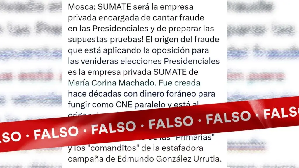 La investigación de Cazadores de Fake News determinó que la información es falsa. Súmate es una organización civil con 22 años de trayectoria que ejerce contraloría social en procesos de participación ciudadana.