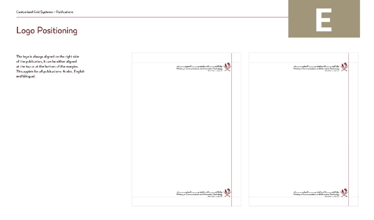 De igual forma, se establece que en los documentos oficiales cataríes, el logotipo debe estar alineado a la derecha, bien sea en la parte superior o inferior del documento, y que no debe existir ningún elemento dentro de un márgen estricto alrededor de dicho logotipo “para garantizar su visibilidad, legibilidad e impacto”.