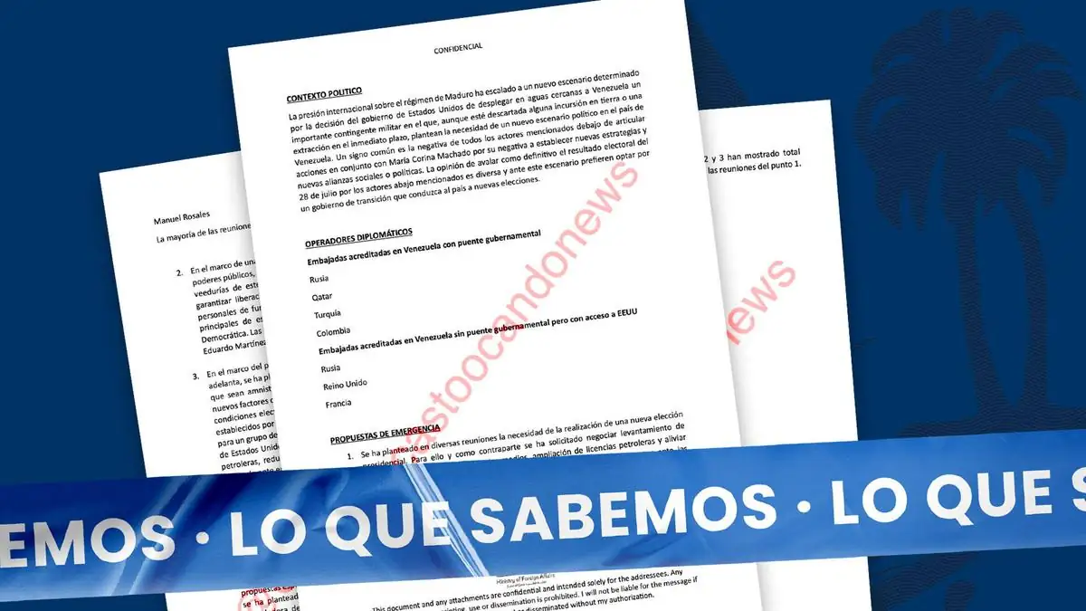 Entre otros tópicos, en el documento se plantean varias supuestas propuestas presentadas para impulsar un proceso de negociación política en Venezuela entre el oficialismo y parte de la oposición. Entre ellas figuran la convocatoria a nuevas elecciones presidenciales, el levantamiento de sanciones contra funcionarios de la administración de Nicolás Maduro y la reactivación de las licencias petroleras. En el texto se menciona explícitamente a figuras políticas venezolanas de oposición y relacionadas con la iglesia católica, como Henrique Capriles Radonski, Gerardo Blyde, Arturo Peraza y José Gregorio Correa, sugiriendo su participación.