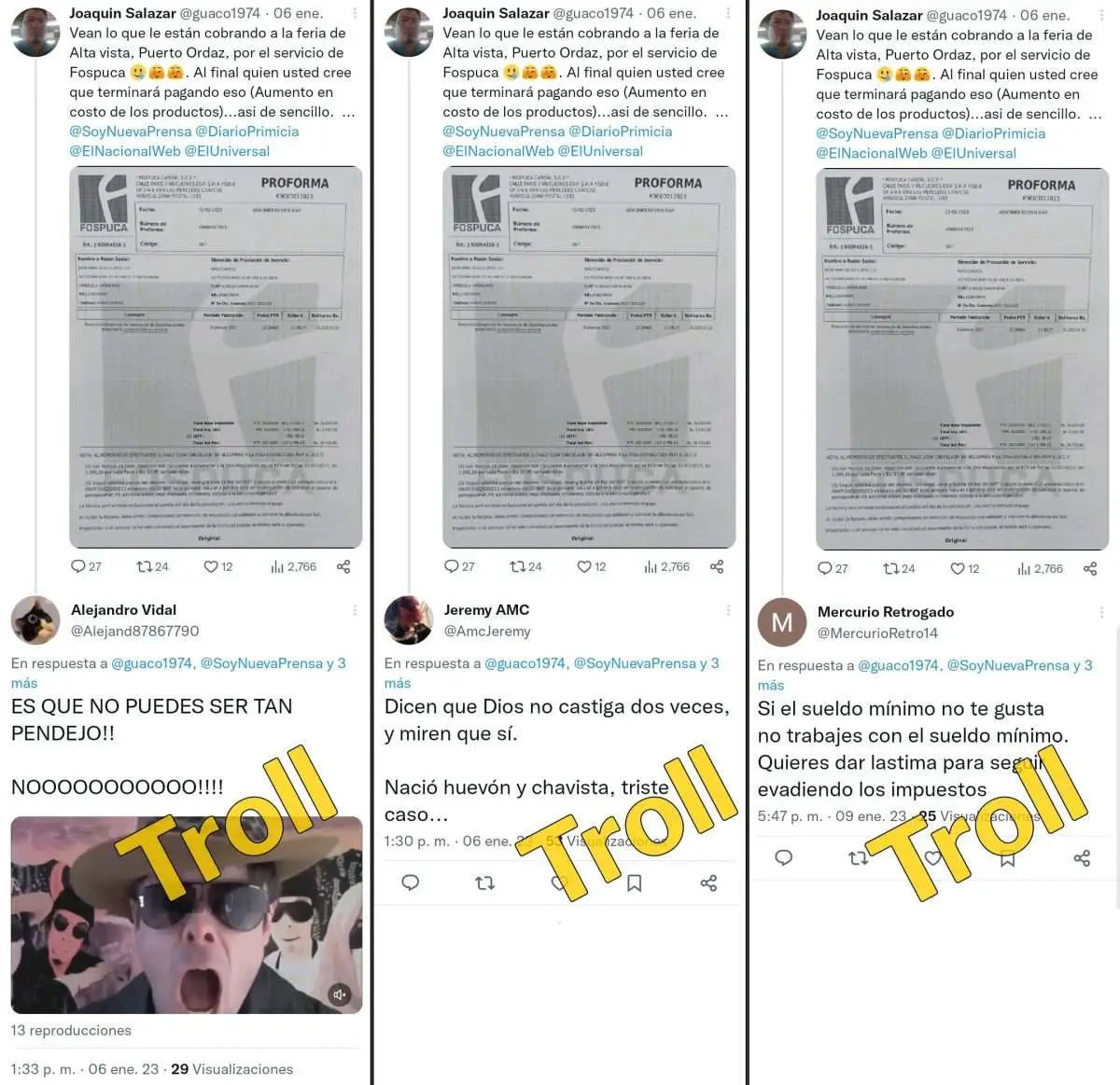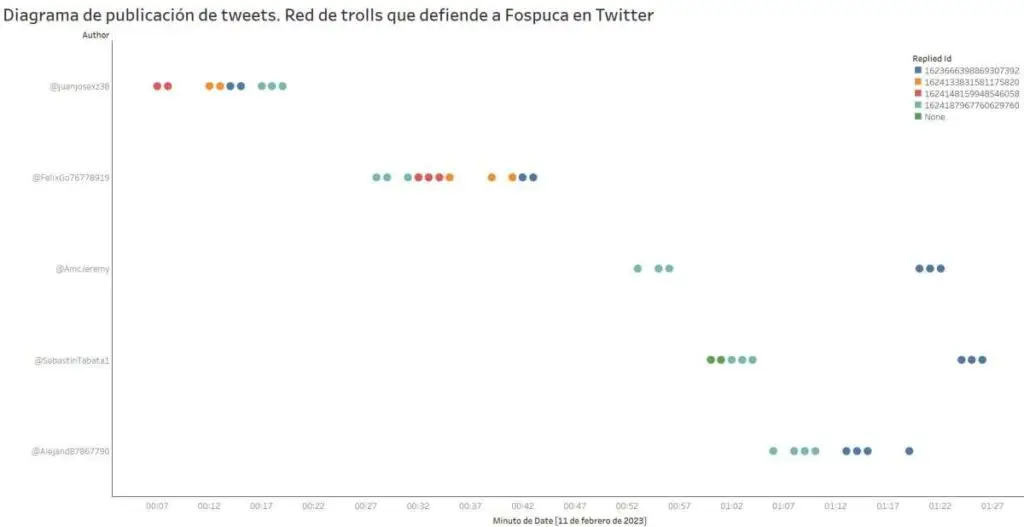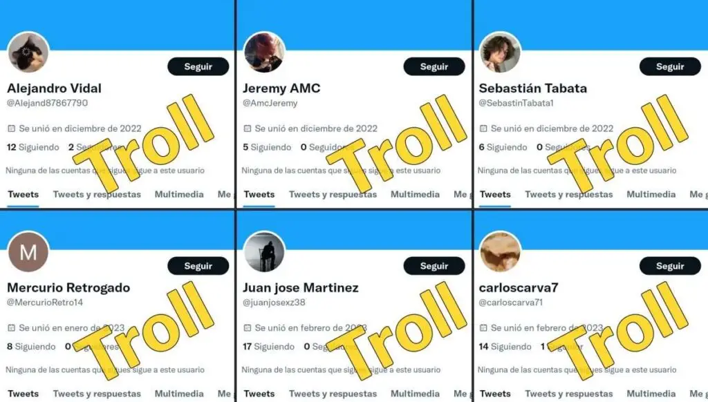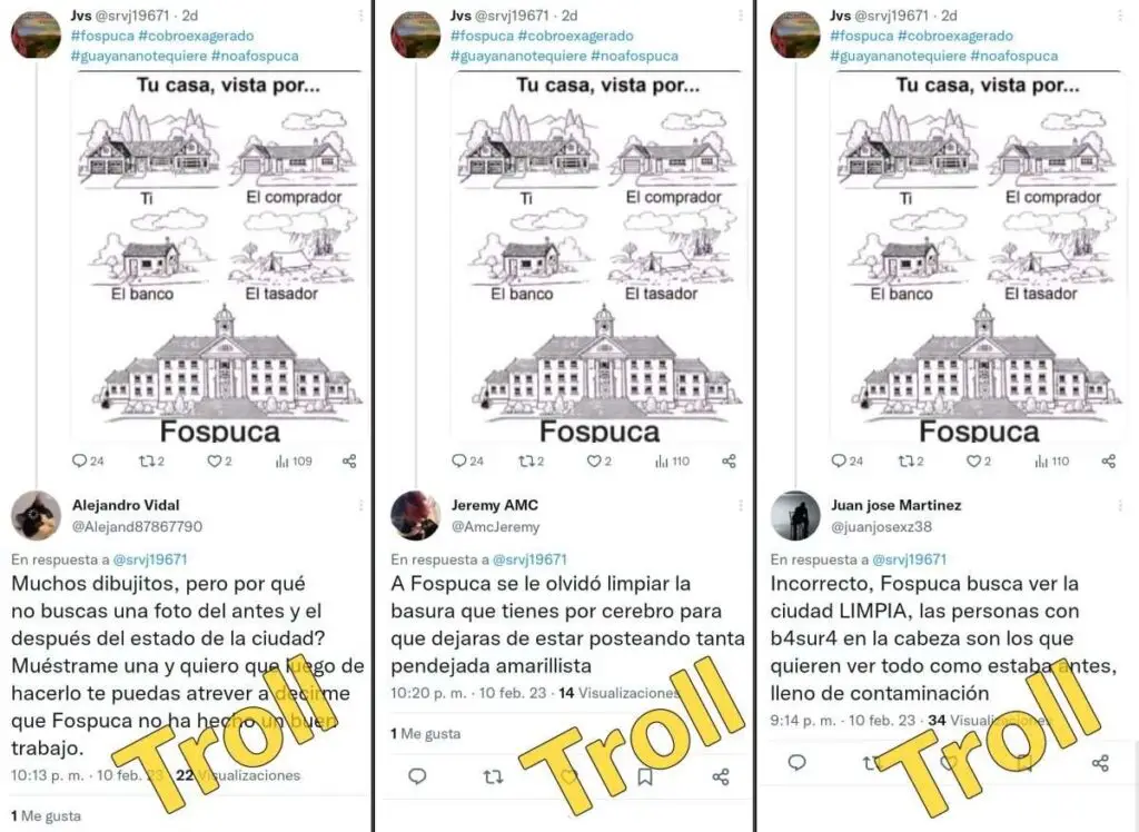 Pero fue la denuncia de uno de nuestros seguidores lo que nos alertó de que una nueva red —compuesta por cuentas troll— relacionada con Fospuca, se encuentra activa en febrero del 2023.