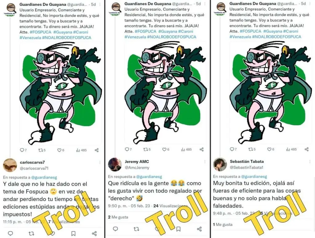 La red de trolls de Fospuca tiene, al menos 14 cuentas falsas que, de manera coordinada, atacan a cualquier persona que publique tweets de reclamos en contra de la compañía en la zona de Ciudad Guayana.