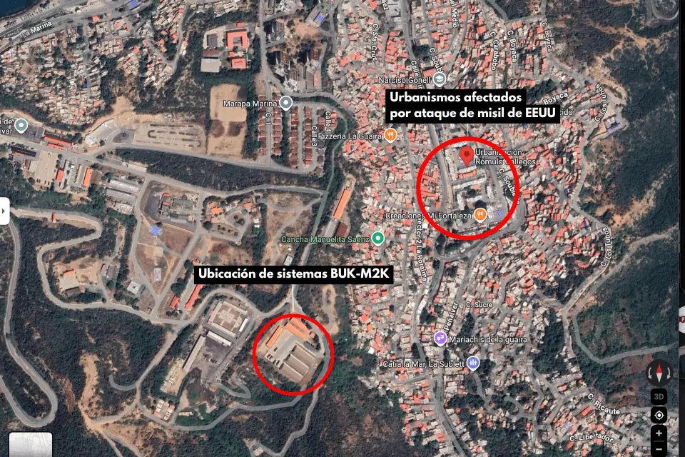 La evaluación de fotografías, videos, mapas e imágenes satelitales permite dar cuenta de cuáles fueron los objetivos puestos en la mira, y por qué, además incorporando evidencias audiovisuales de la misma madrugada –registradas por habitantes de distintos sectores–, que coinciden en algunos casos con las exposiciones de armas de defensa que la propia administración de Nicolás Maduro hizo durante 2025.