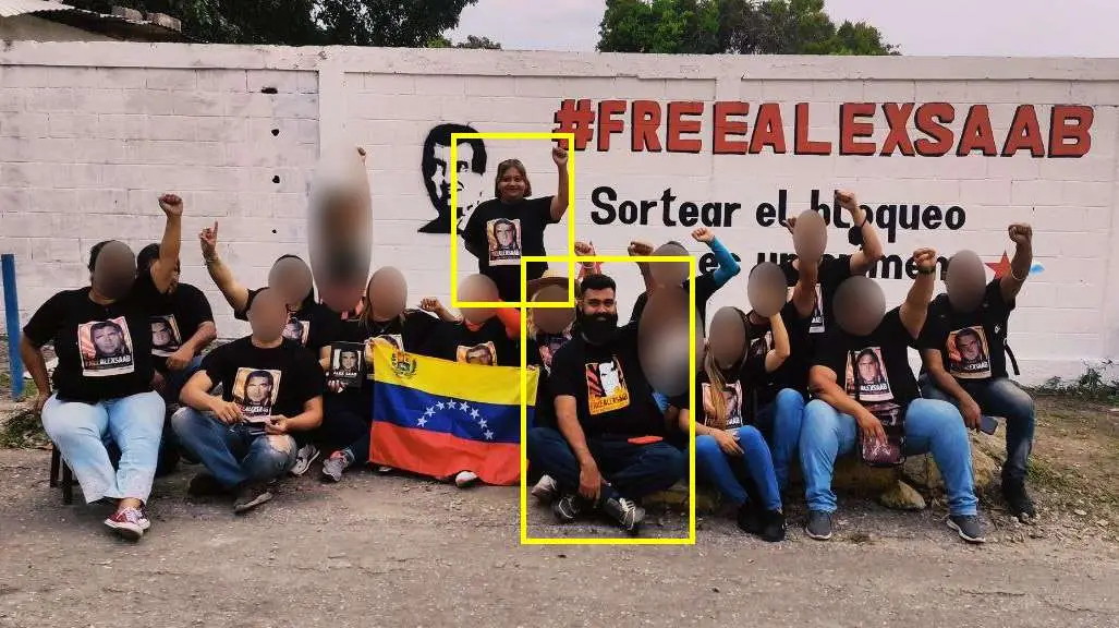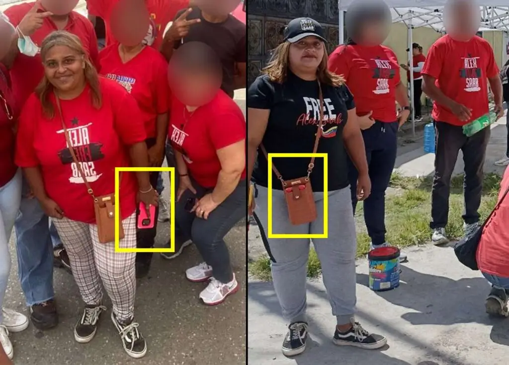 La mujer de la blusa verde, de nombre “Alexandra”, ha participado en gran cantidad de actividades realizadas por el Movimiento Free Alex Saab, un grupo organizado de venezolanos participantes de una operación de influencia a favor de la liberación de Alex Saab, un empresario cercano a Nicolás Maduro, que fue detenido en Cabo Verde en 2020. En diciembre de 2023, Saab fue liberado en un proceso de intercambio de personas detenidas por los gobiernos de Estados Unidos y Venezuela y actualmente es el presidente del Centro Internacional de Inversión Productiva (CIIP) de Venezuela.