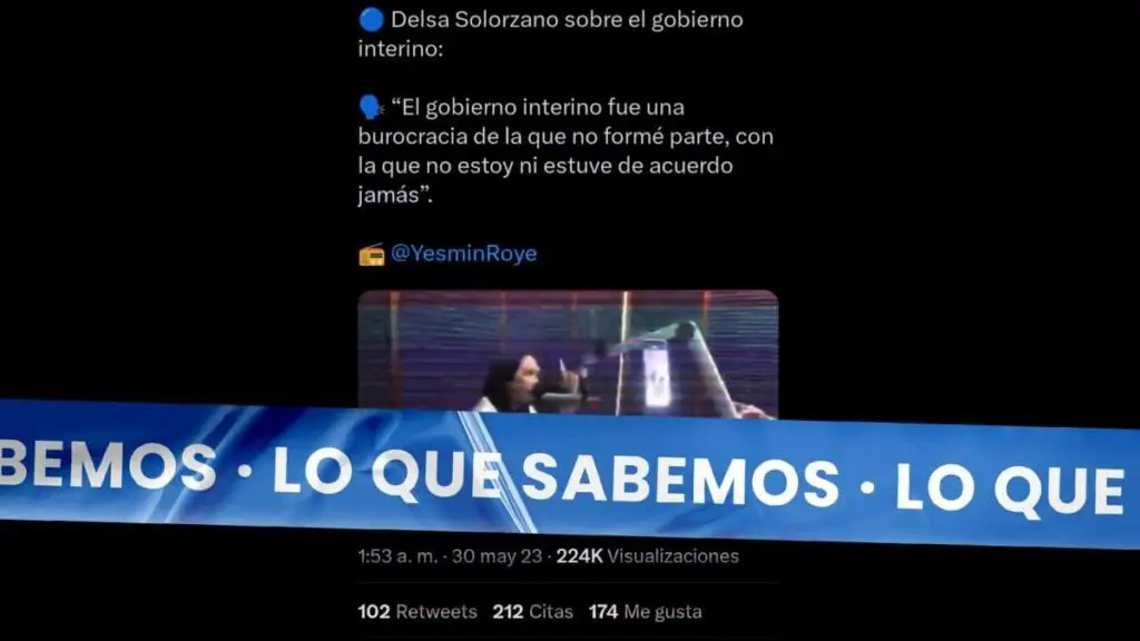 El video fue publicado en una cuenta de Twitter y circuló acompañado por un texto que indica “Delsa Solorzano sobre el gobierno interino: ‘El gobierno interino fue una burocracia de la que no formé parte, con la que no estoy ni estuve de acuerdo jamás’”.
