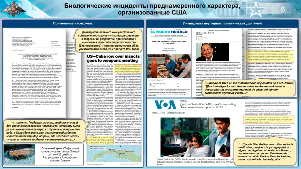 Kiríllov incluyó el caso de Chávez en un conjunto de diapositivas y documentos que utilizó durante su alocución y que están disponibles para la descarga en la página de la red social VK del Ministerio de Defensa Ruso: