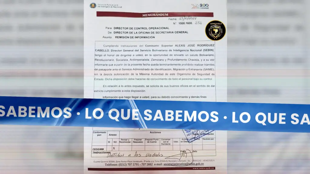 Si bien el memorándum señala que debe solicitarse una autorización ante el SEBIN para tramitar el pasaporte, también se lee que “dicha disposición debe hacerse de conocimiento de todo el personal bajo su control”, lo que se interpreta como una medida directa para los funcionarios de este organismo de seguridad y no a la ciudadanía en general.