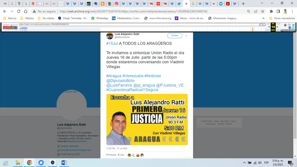 En 2020, Luis Ratti ya había hecho otro montaje fotográfico al promocionar en sus redes sociales su candidatura parlamentaria con la imagen de Primero Justicia, en medio de la intervención que el TSJ impulsó contras varias organizaciones político electorales para mediados de ese año. La dirigencia tradicional del partido amarillo y negro rechazó en esa oportunidad la vinculación de Ratti con su partido.