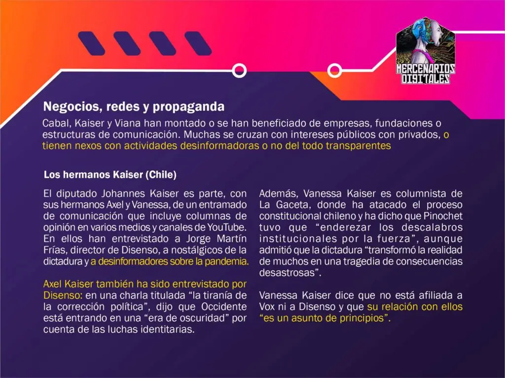 El otro gran altavoz de Disenso es La Gaceta de la Iberosfera, un sitio web de noticias que compró en 2020. El diario publica información y opinión de España y América Latina con una línea editorial de derecha, y en ocasiones sirve de altavoz para las mentiras de los amigos de Vox en América Latina.