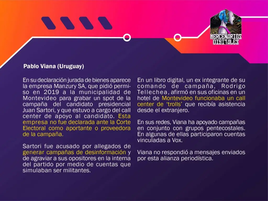 Esto encontró una investigación realizada como parte de Mercenarios Digitales, una alianza periodística de 20 medios, cinco especialistas en investigación digital y estudiantes universitarios de maestría, coordinada por el Centro Latinoamericano de Investigación Periodística, CLIP, que busca desnudar la industria y los métodos de la manipulación digital en Latinoamérica.