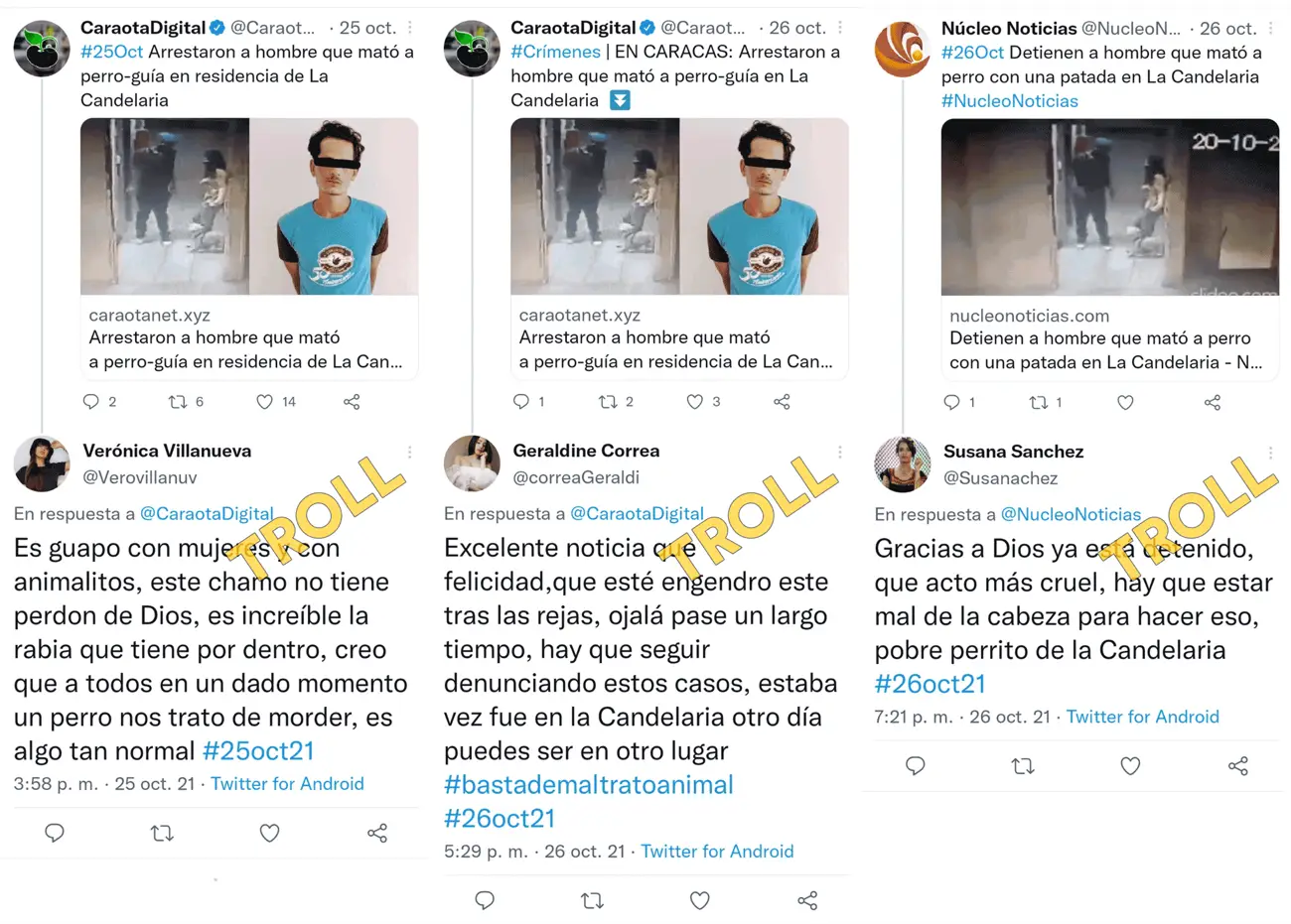 Los días 25 y 26 de septiembre de 2021, 39 cuentas troll publicaron 96 tweets relacionados con un caso de maltrato animal ocurrido en La Candelaria, Caracas.