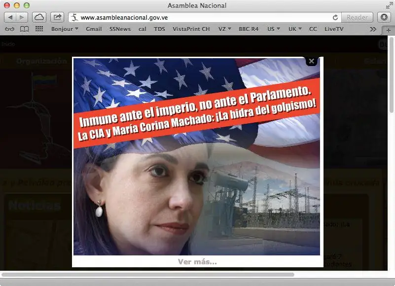 Por ejemplo, según un artículo publicado en septiembre de 2013 en el antiguo blog del medio venezolano Caracas Chronicles, la página web de la Asamblea Nacional de Venezuela —para entonces presidida por Diosdado Cabello— abría con un banner con el rostro de Machado, un título en el que era calificada como “la hidra del golpismo”, y con un enlace a un artículo difamatorio publicado en la misma página de la asamblea Nacional.