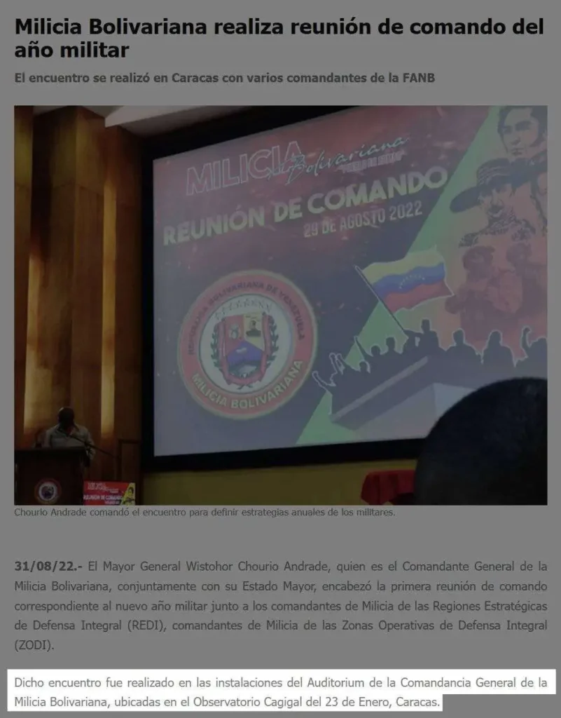 La confirmación de que el edificio registrado en el video es el antiguo Observatorio Cagigal se logró debido a que algunos de los detalles de la fachada coinciden con fotogramas de uno de los videos difundidos. La identificación del antiguo Observatorio Cagigal como la sede de la Comandancia General de la Milicia Bolivariana se validó tras consultar fuentes cercanas al gobierno de Maduro, como el Correo del Orinoco y Ciudad CCS.