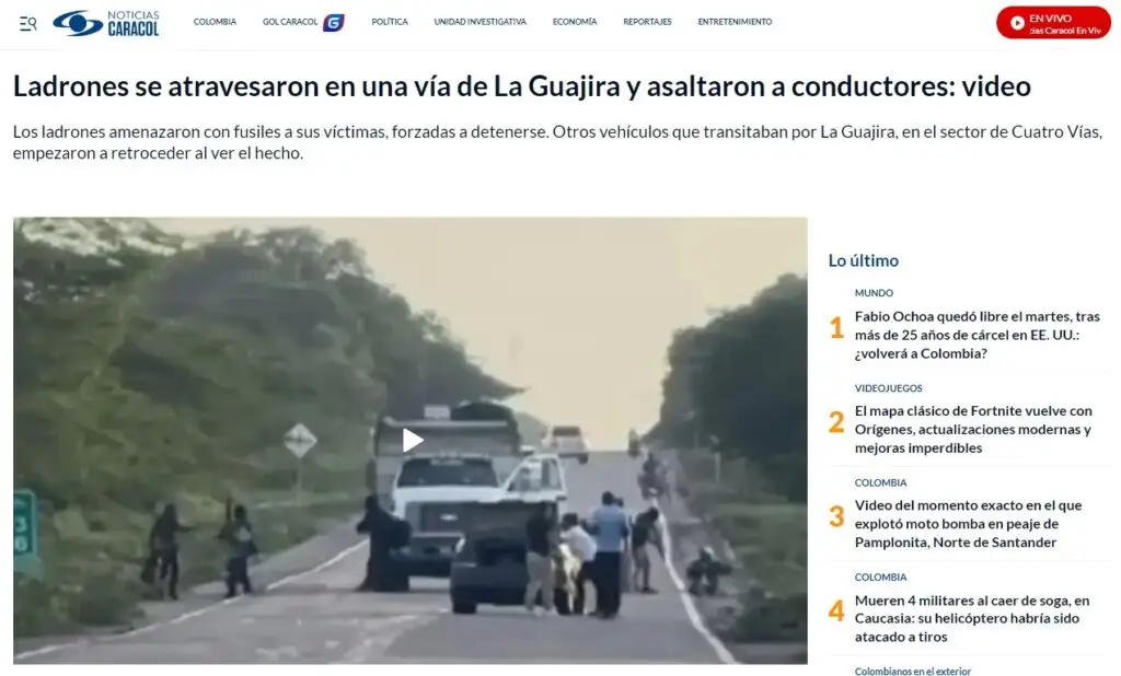 El video en el que aparecen delincuentes portando armas de guerra asaltando, supuestamente, a conductores a la entrada de Boca de Uchire en diciembre de 2024, es engañoso. Este hecho fue reportado en territorio de La Guajira Colombiana a más de 1.000 kilómetros de distancia del estado Anzoátegui al oriente de Venezuela.