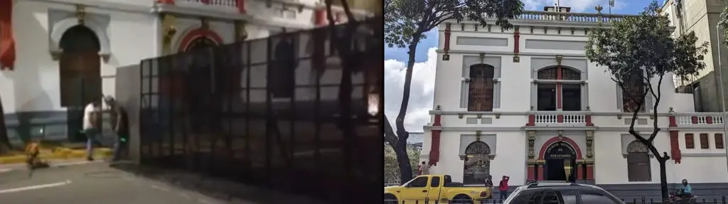 Aunque el video muestra la instalación de estructuras de metal en la zona de Miraflores, no se trata de una barricada alrededor del Palacio Presidencial que sugiera que “Maduro está atrincherado”. Se trata, sin embargo, de un trabajo realizado frente al Archivo Histórico de Miraflores, ubicado a varias cuadras de distancia.