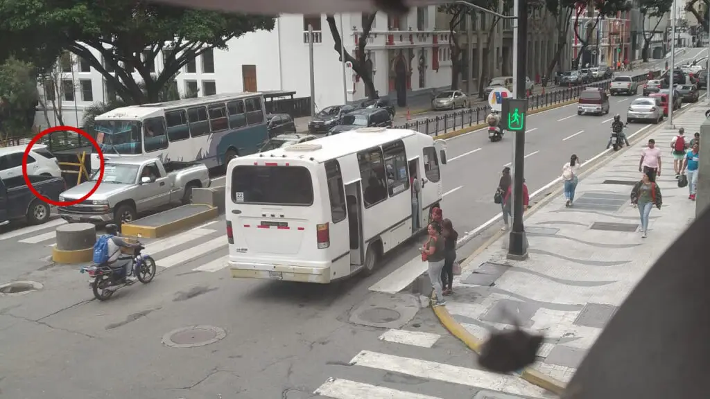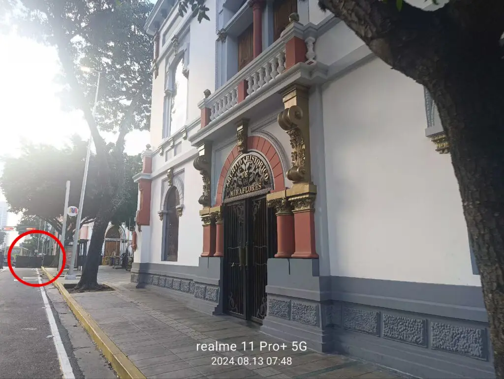 Fotografías tomadas la mañana del 13 de agosto y compartidas por uno de los voluntarios del Foro Cazadores permitieron identificar que en el perímetro sí hay bases de metal plegables cercanas al Archivo Histórico de Miraflores que parecen formar parte de barreras móviles, por lo que las estructuras mostradas en el video podrían formar parte de barreras móviles utilizadas en la zona de seguridad alrededor del palacio presidencial.