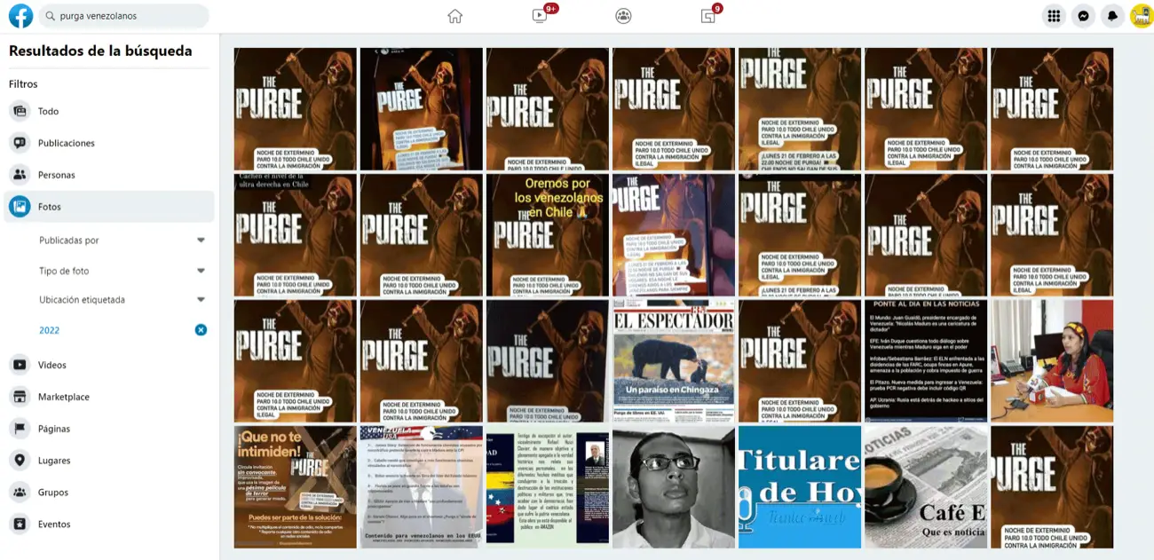 Usamos la herramienta WhoPostedWhat.com para rastrear la difusión de la imagen en Facebook y nos suscribimos a más de 20 grupos de venezolanos en Iquique, Tarapacá, Colchane, y en Chile, buscando rastrear la imagen. Con ninguno de los métodos anteriores se pueden realizar búsquedas de la imagen en grupos o páginas privadas, pero se pueden conocer cuántas veces la convocatoria ha sido publicado de forma pública en Facebook, para estimar su viralidad en esa red social: