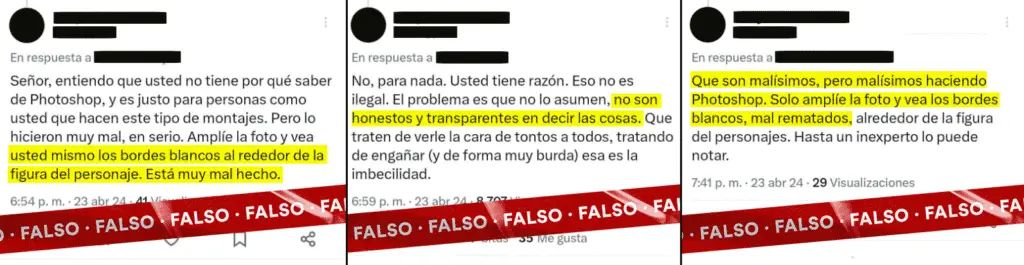 Entre algunos de los comentarios evaluados, usuarios argumentaron que alrededor de González se podía apreciar un «borde blanco», supuesta evidencia de una manipulación digital que probaba que las fotos eran un engaño y que González no se encontraba en el país en ese momento.