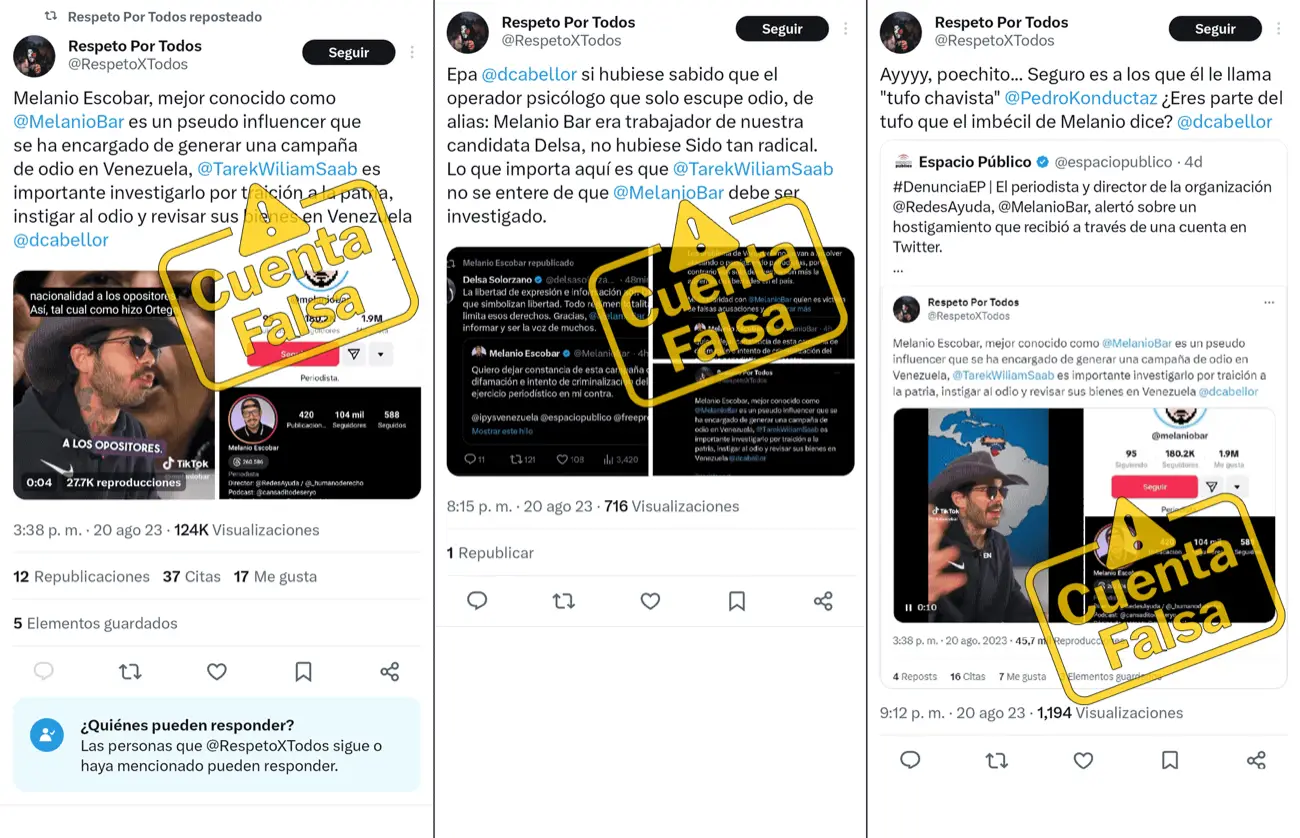 El pasado 20 de agosto, Melanio Escobar, periodista venezolano exiliado y director de la organización no gubernamental (ONG) Redes Ayuda, denunció que la cuenta @RespetoXTodos en la red social X/Twitter había emitido una serie de mensajes que intentaban criminalizar su labor periodística en redes sociales. Escobar se suma a un creciente número de periodistas y comunicadores venezolanos que, en los últimos meses, han popularizado contenidos en formato de videos verticales breves. En el caso de Escobar, se ha destacado por generar contenido noticioso a través de videos diarios que resumen la actualidad venezolana, generalmente desde una perspectiva crítica y con toques de humor.
