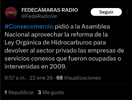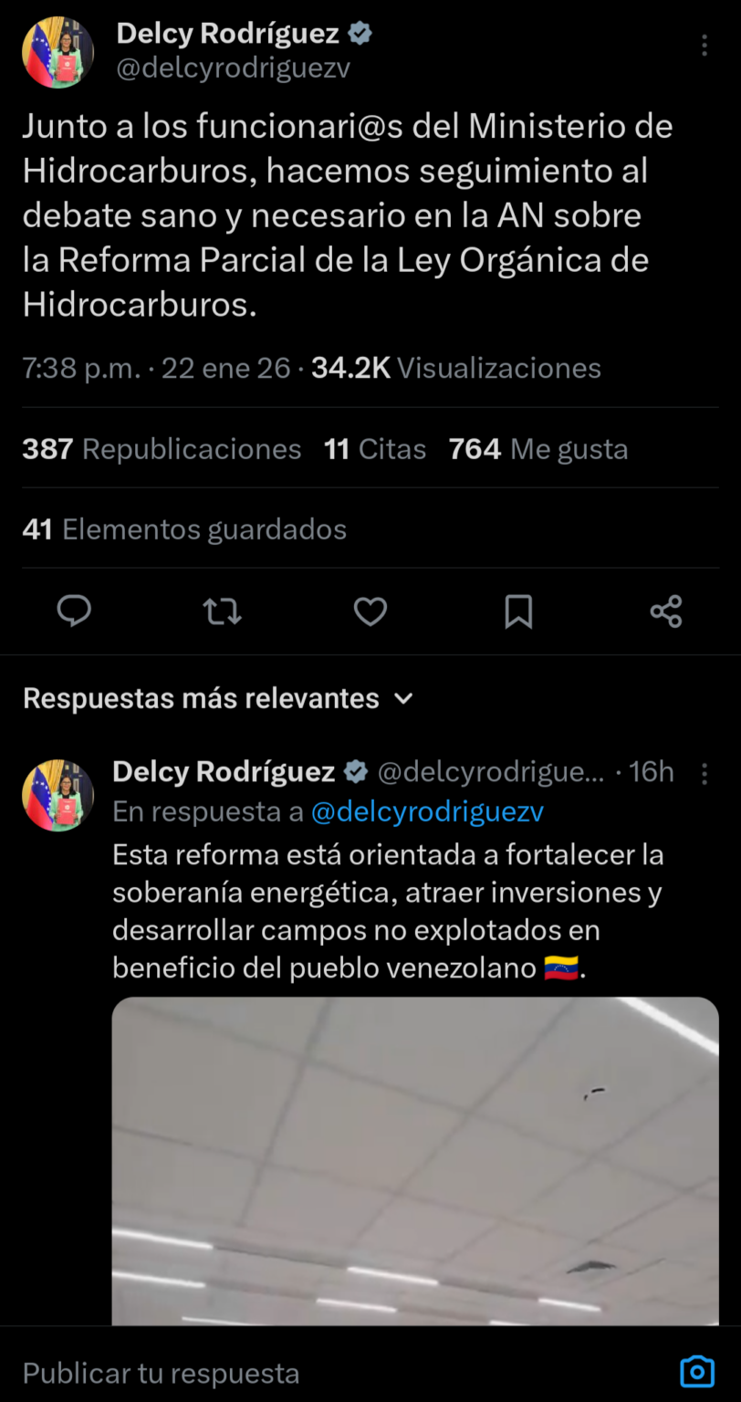 En el contexto de la detención de Nicolás Maduro y Cilia Flores, tras una operación militar de Estados Unidos y el tutelaje de la administración de Donald Trump sobre la presidencia encargada de Venezuela, la Asamblea Nacional (AN) aprobó en primera discusión la Reforma Parcial de la Ley Orgánica de Hidrocarburos, propuesta por el Ejecutivo que encabeza Delcy Rodríguez.