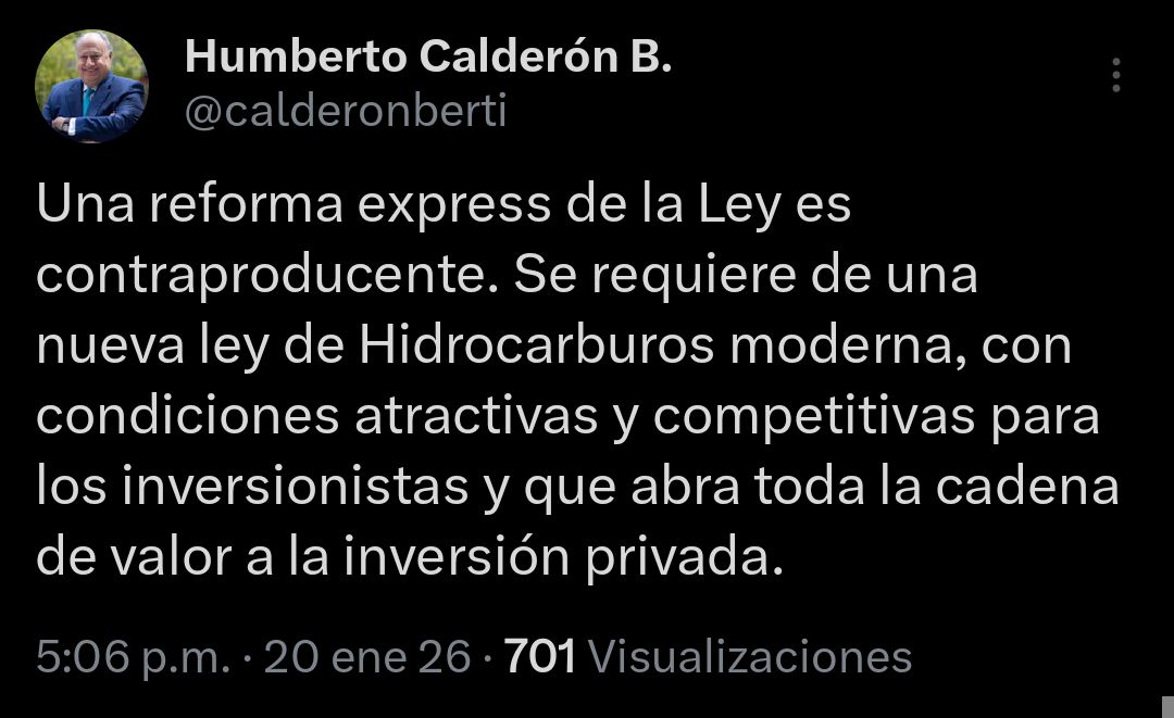 Recalcó que el proyecto de ley no cumple ese objetivo y consideró que es un intento de “conciliar el legado de Chávez” con la apertura de la industria petrolera al sector privado, cuyo resultado es un marco regulatorio “confuso” sin reglas claras.
