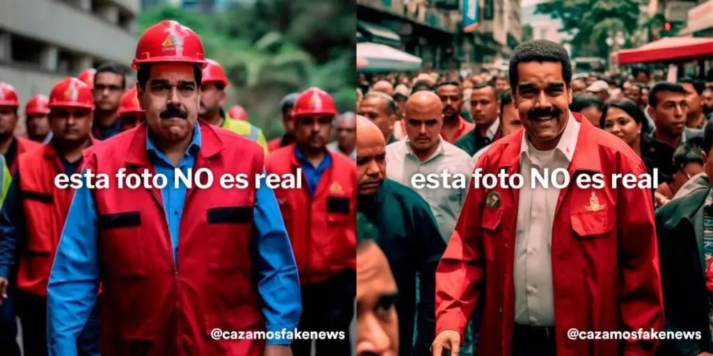 Sin embargo, parece inevitable que estas imágenes generadas “por curiosidad” se hagan virales fuera del contexto original y terminen engañando a algunos usuarios, tal como demostró el propio Carvajalino al confirmar que una de las imágenes de Nicolás Maduro que había generado con IA había sido usada para crear un meme propagandístico, sin que su diseñador advirtiera que la cinta con la bandera que porta el presidente no es una verdadera representación del Pabellón Nacional.