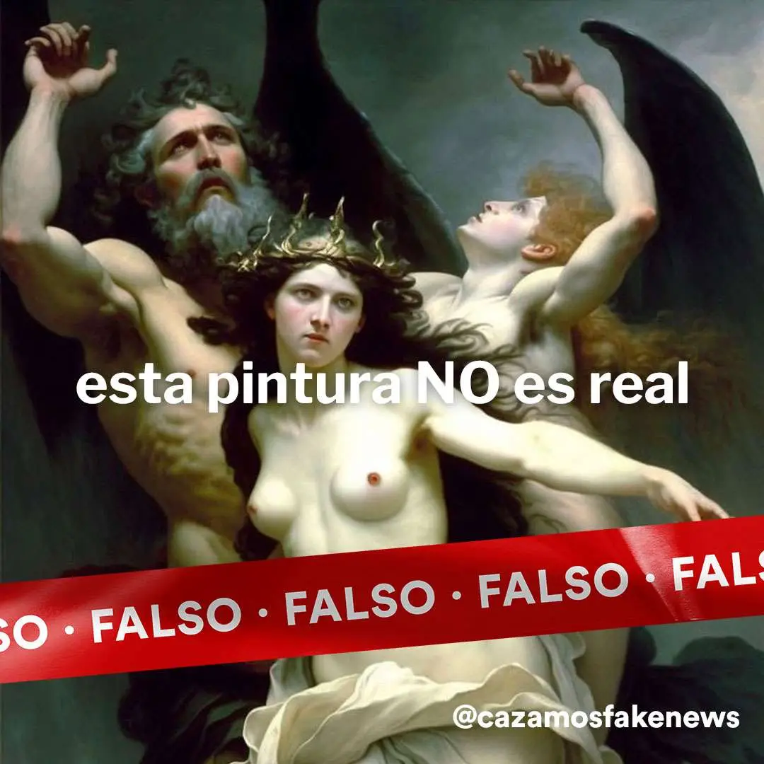 “Esta es una imagen generada por IA, no una composición original hecha por humanos. Las manos de las figuras lo delatan, ya que los generadores de imágenes de IA han sido propensos a crear representaciones inexactas de las manos”.