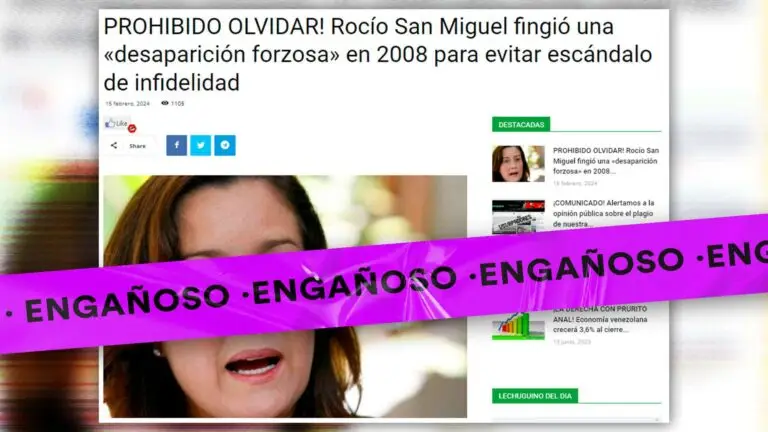 Engañoso: ¿Rocío San Miguel fingió una “desaparición forzosa” junto con Eugenio Mendoza en 2008?