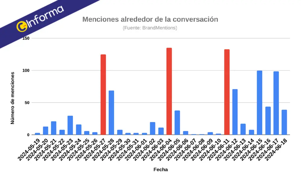 La muestra de esta conversación se concentró principalmente en X con 77,38% (804 menciones), seguido por Facebook con 17,81% (185), Instagram con 4,43% (46) y en último lugar se registraron 0,38% de las menciones en TikTok, con tan sólo 4.