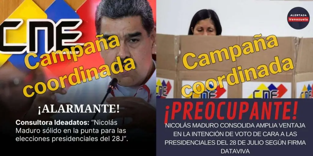 Un conjunto de falsos noticieros en Instagram compartieron esta semana resultados de varias encuestas que ponen a Nicolás Maduro como el candidato presidencial con mayor probabilidades de ganar la contienda electoral del 28 de julio. Las publicaciones realizadas por varios de los pseudo noticieros, están dirigidas a lectores de tendencia opositora, y llevan titulares con palabras como “¡Alarmante!”, “¡Preocupante!” o “Inquietante”, para resaltar la supuesta amplia ventaja que tiene Maduro con respecto al resto de los candidatos y, posiblemente, desincentivar la participación opositora.