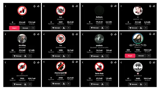 El contenido que utilizan los hashtags relacionados con la delgadez extrema, en la mayoría de los casos, provienen de perfiles sin nombre oficial que, en su lugar, utilizan apodos o palabras que tienen que ver con comida o animales. Además, no usan imagen de perfil, pero en algunos casos se dan indicios de que son personas menores de edad.