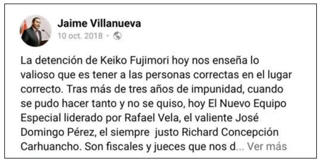 Gracias a los “testimonios” de Villanueva, Keiko Fujimori se presentó como víctima de una persecución delictiva, supuestamente ejecutada en conjunto por Gustavo Gorriti de IDL-Reporteros y los fiscales del caso Lava Jato.