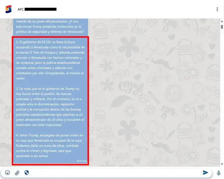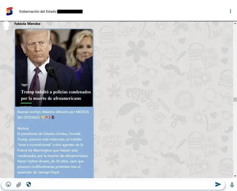 La estrategia contra Trump llegó después de que el mandatario, en una de sus primeras medidas de gobierno, indultó a dos policías condenados por la muerte de Karon Hylton-Brown, un afroamericano de 20 años. A raíz de ese hecho, miembros del ministerio de Comunicación difundieron a través de Siscom líneas discursivas para generar conversación en redes sociales. Una de ellas decía lo siguiente: “El gobierno de Estados Unidos se llena la boca acusando a Venezuela como la responsable de la banda El Tren de Aragua y además pretende vincular a Venezuela con hechos criminales y de violencia, pero la policía estadounidense comete actos criminales y además son indultados por ellos. Gringolandia, el mundo al revés!”.