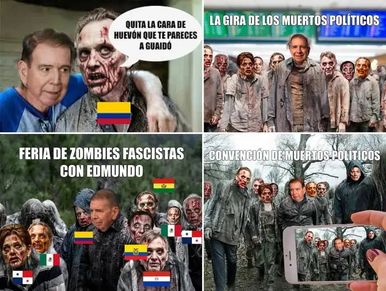 Los memes diseñados contra el exdiplomático lo ilustraban como una especie de zombie junto a otros ex presidentes latinoamericanos, bajo textos como “la gira de los muertos políticos” y “feria de zombies fascistas con Edmundo”.