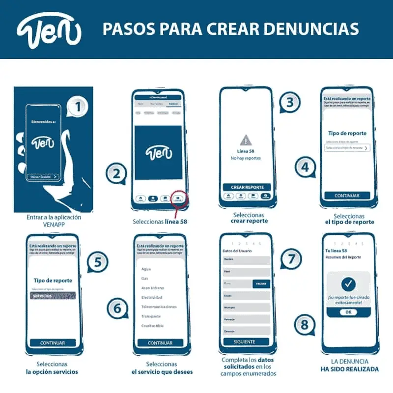 Aquí se puede ver que cuando los usuarios de VenApp realizan reportes en línea, la aplicación les solicita sus datos personales como nombre, dirección y ubicación georreferenciada de la denuncia: