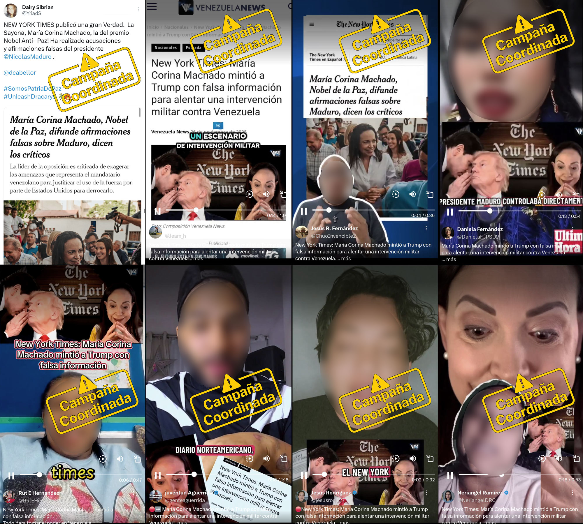 Pantallazos de ese artículo de The New York Times fueron rápidamente aprovechados por una red de creadores de videos de propaganda que amplifican artículos de Venezuela News, coordinadamente, en varias redes sociales, así como por la operación de información encubierta desplegada en X por la Dirección de Medios Digitales del Mippci.
